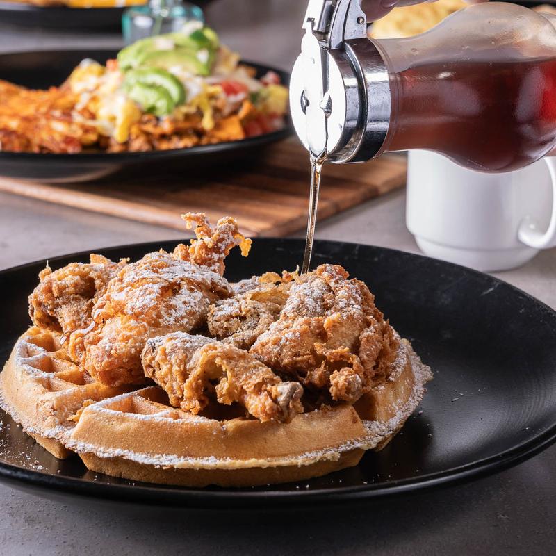 Love this place, took a ride out to Metro City, right on S.Murphy and sat down outside, was not busy for a Sunday morning, I had the Chicken Waffles, the chicken was crisp and well seasoned and they give you plenty., she had the crab eggs Benedict and they were tasty as well..